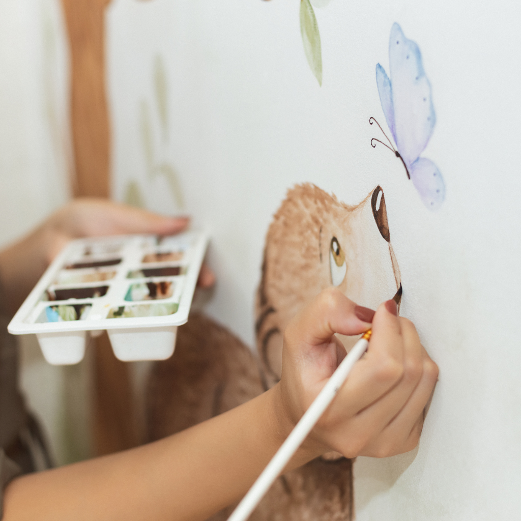 Transforme o quarto do seu filho em um lugar único, com papéis de parede personalizados ou paredes pintadas à mão.